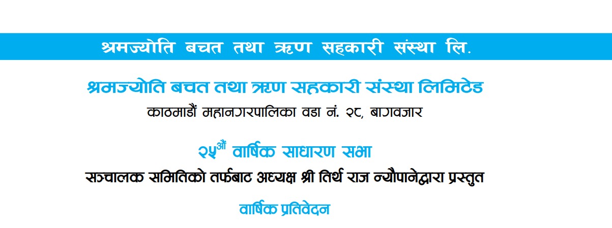 सञ्चालक समितिका मिति २०८१।०६।१२ गतका निणयानसार निम्नमिति, समय र स्थानमा यस सस्थाका २४आ वाषिक साधारण–सभा वस्न भएकाल सम्पण सदस्यज्यहरु लगायत सम्वन्धित सवका जानकारीका लागि या सचना पकाशित गरिएका छ । उक्त साधारण–सभा सम्वन्धी सचना सस्थाका सव शयर सदस्य महानभावहरुलाइ पठाइ सकिएकामा कारणवश पाप्त नभएपनि यस