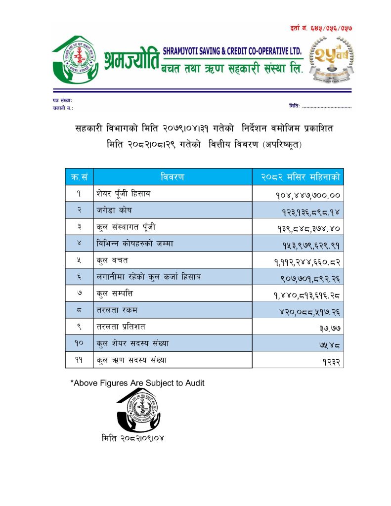 मासिक वित्तीय विवरण (मंसिर २०८२)