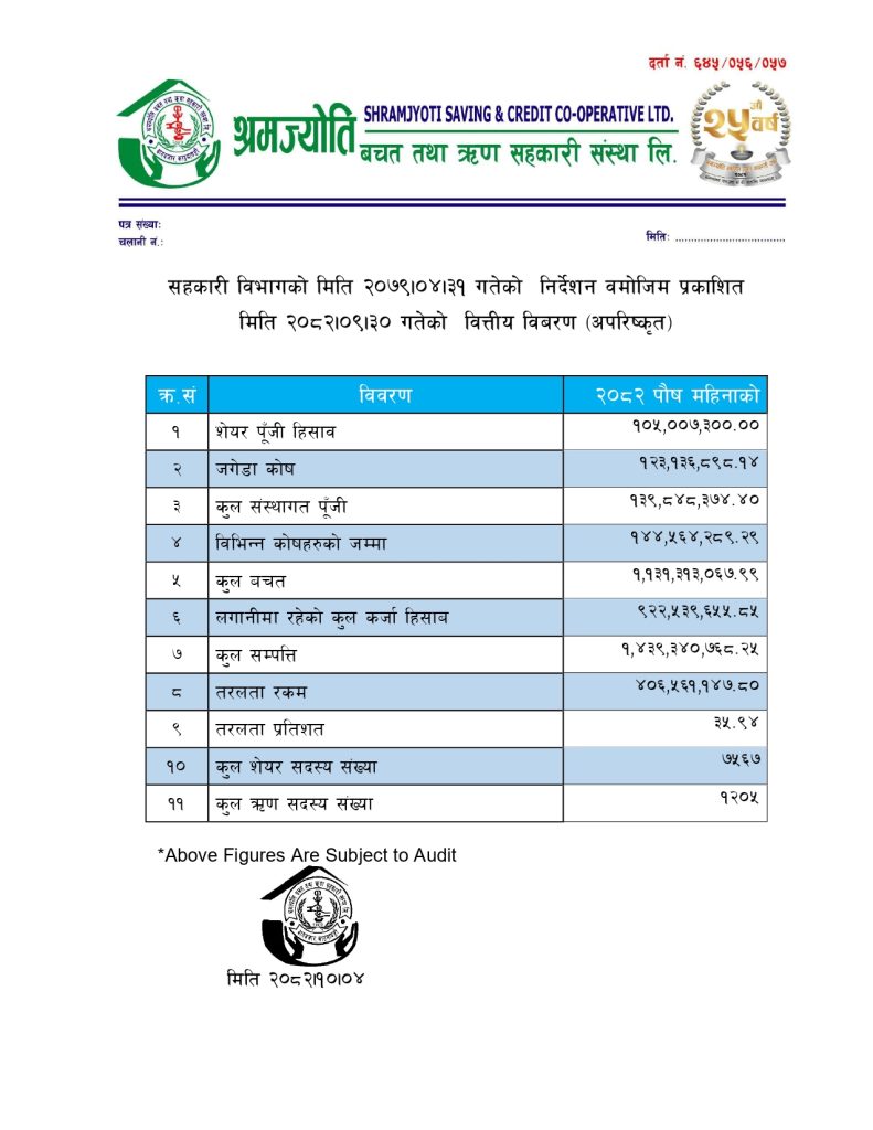 मासिक वित्तीय विवरण (पाैष २०८२)